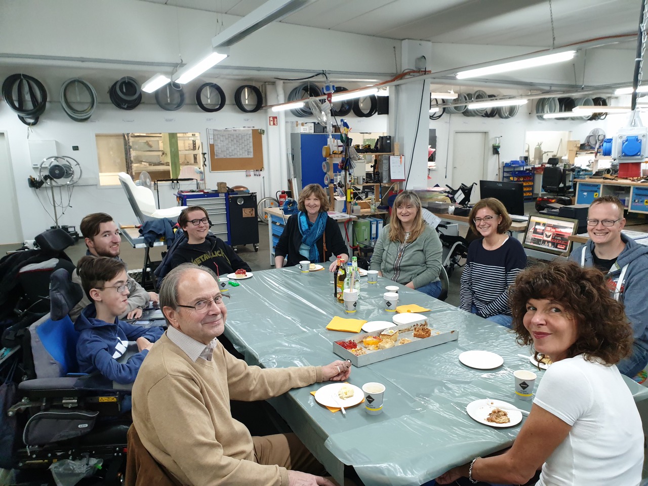 Am 04.05.2019 fand ein erstes Treffen beim Frühlingsfest in den Räumen von Reha&Care in Nürnberg statt. Wir wählten diesen Veranstaltungsort, weil sich Frau Prof. Buch dort vor Ort ein Bild von Hilfsmitteln für muskelkranke Menschen machen und deren Einsatz live erleben konnte. So fand unser Kennenlernen und ein erstes gemeinsames Gespäch in der Werkstatt am Lackiertisch statt.