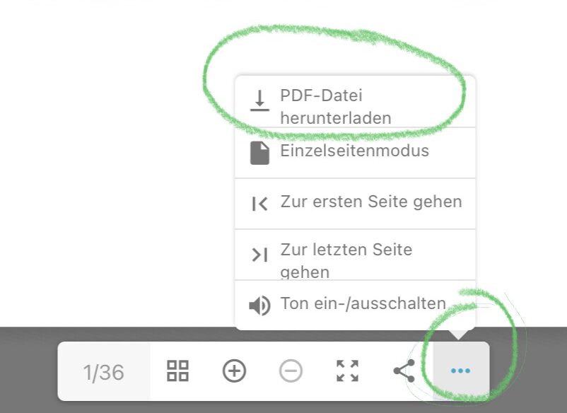 Wenn Sie in der Menüleiste des Kataloges auf die drei Punkte drücken, können Sie sich den Jahresbericht auch als pdf-Datei herunterladen.